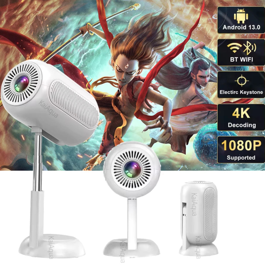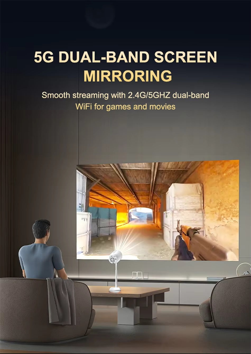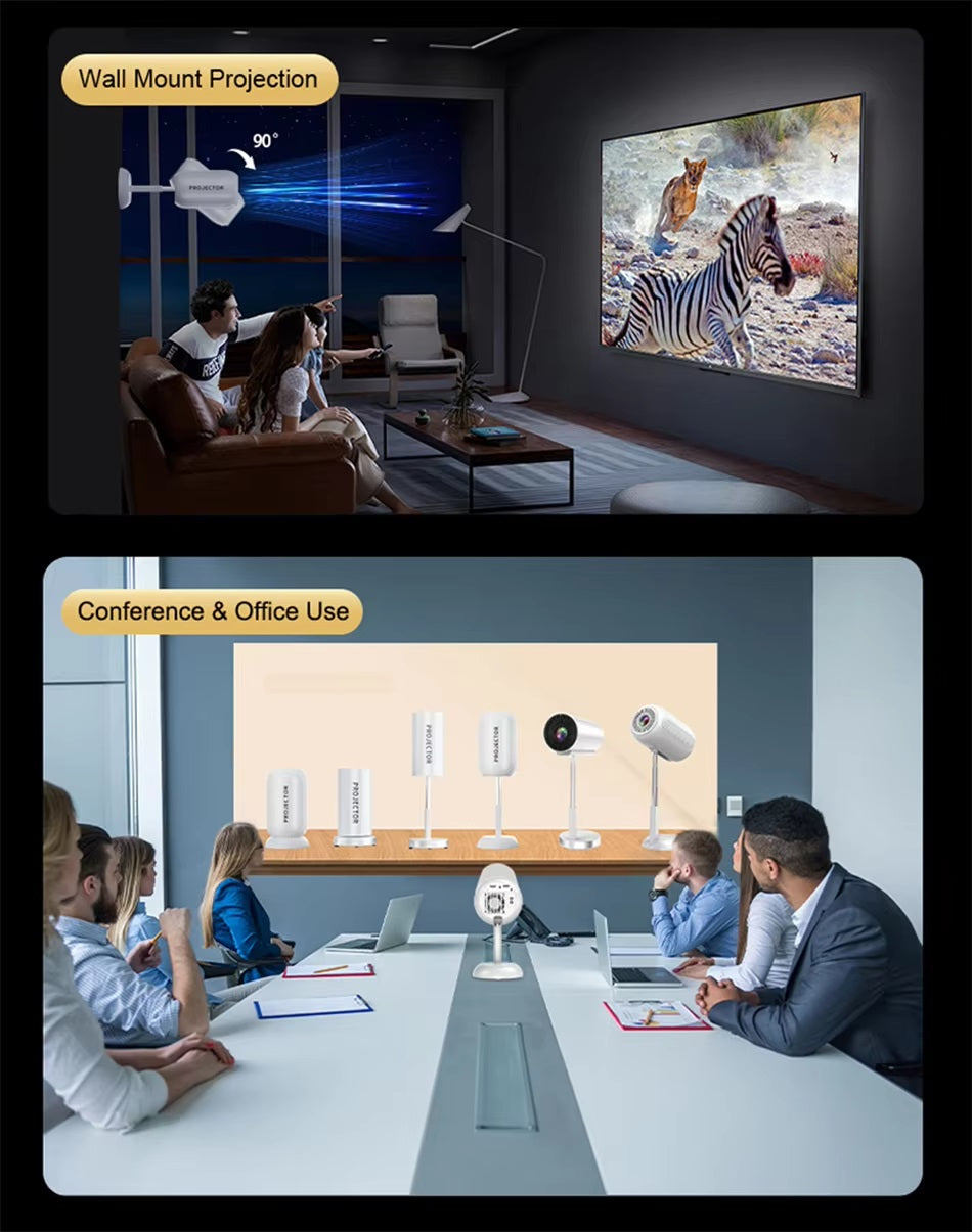 Portable Projector With WIFI and Bluetooth: Supports wireless screen mirroring for IOS, Android, and Windows devices.With 5GHz Wi-Fi technology, you can easily display the screen of your devices without extra adapters or apps. (Note: Netflix, Amazon Prime Video,Hulu, and some similar apps do NOT support screen mirroring due to copyright protections.